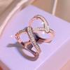European and N Fashion Geometric Lines Plated Rose Gold Micro Set Zircon Chain Ring Trend Ring Girl