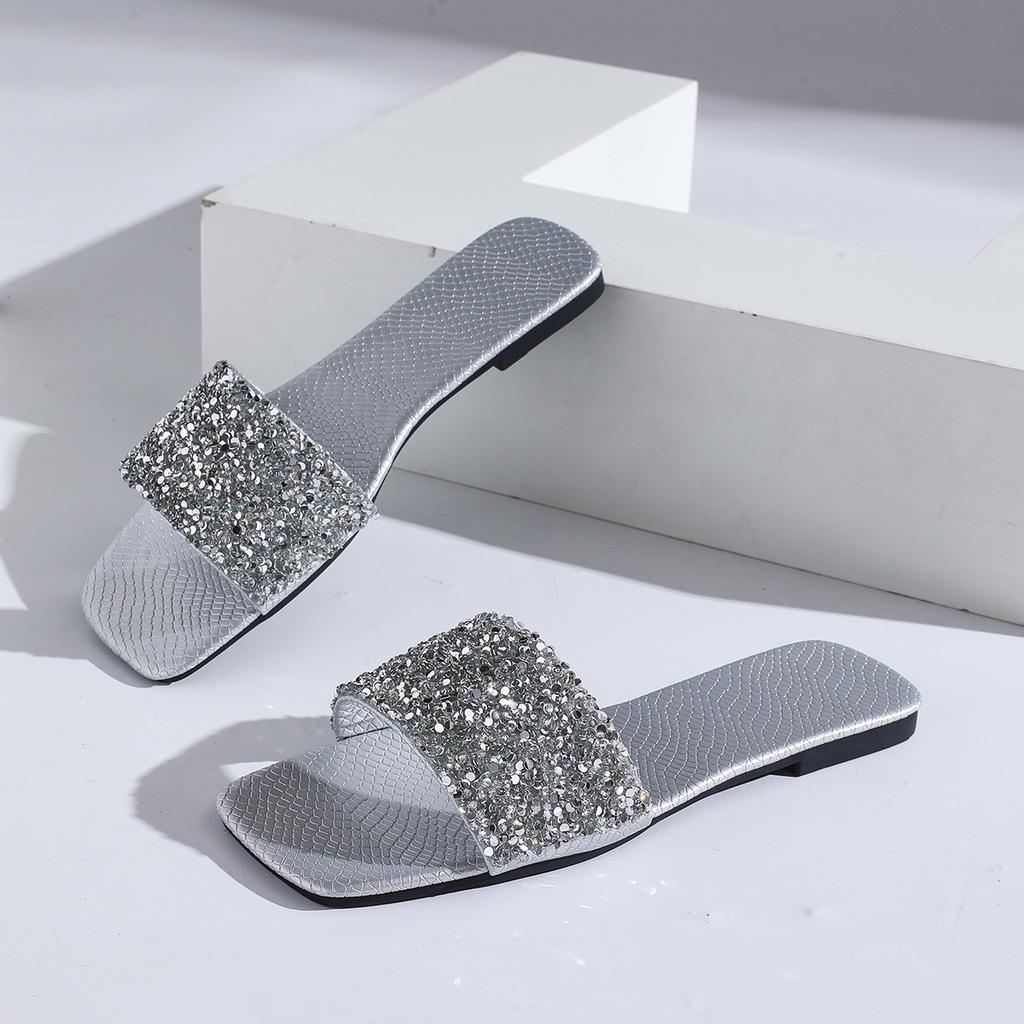 Sequined Slippers Women's 2025 Summer New Large Size Flat Slippers Comfortable Beach Slippers