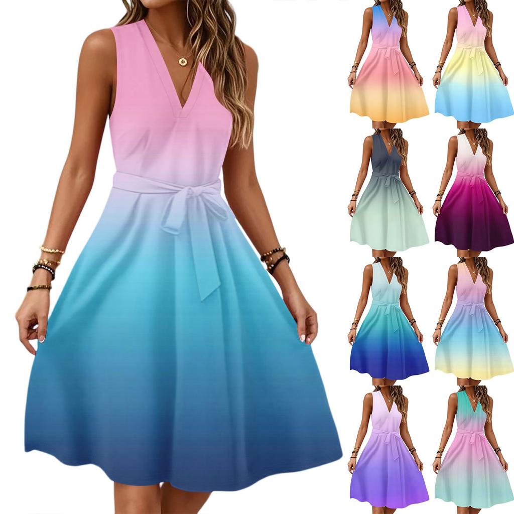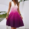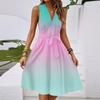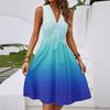 Women's Spring And Summer Casual V-Neck Sleeveless Waist Gradient Printed Midi Dress