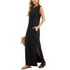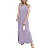 JKASHDK Women's Fashion Summer Spring Solid Color Print Sleeveless O-Neck Loose Waistline Casual Dresses