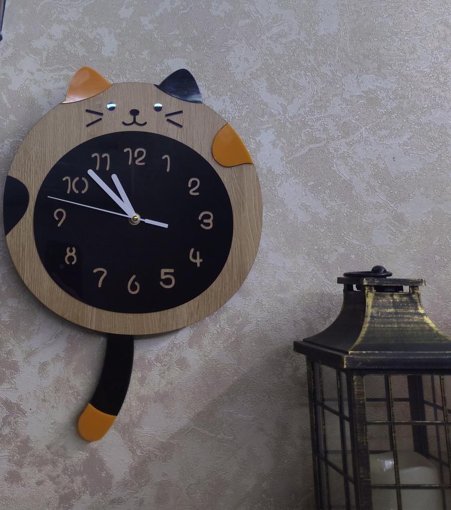 Acrylic Cat Wall Clock, Silent Hanging Clock for Bedroom Kids Room Kitchen