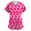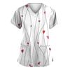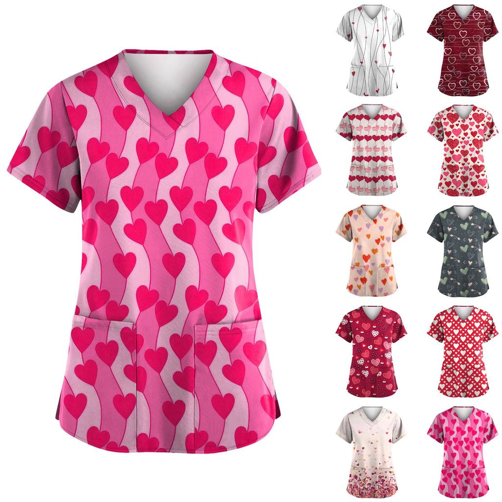 Women's Valentine's Day Printed Uniform Work Uniform V-Neck Pocket Protective Uniform
