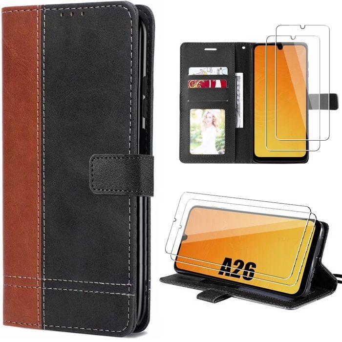 Protective Case - BOOLING - for Samsung Galaxy A26 5G - Two-Tone Synthetic Leather - 2 Tempered Glass - Shockproof