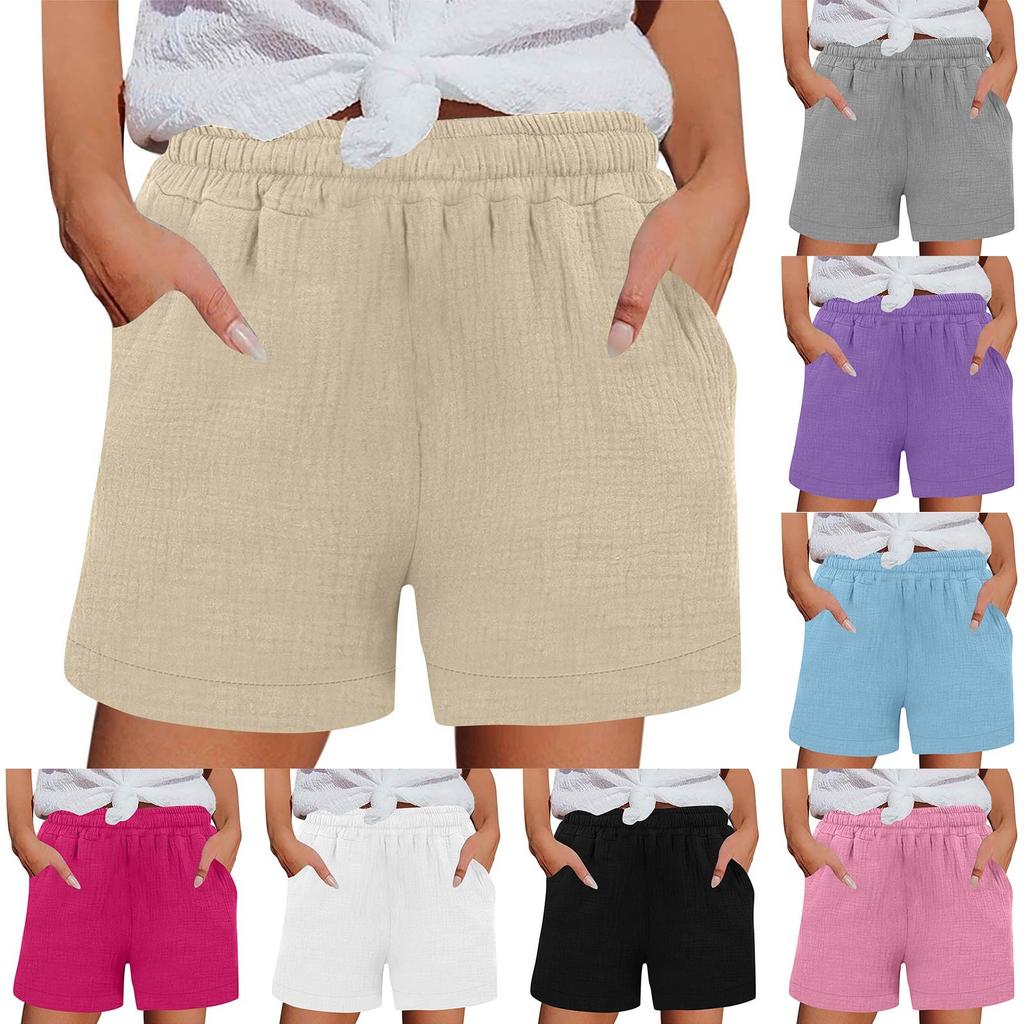 Women's Casual Summer Elastic Beach Shorts Solid Casual Shorts
