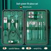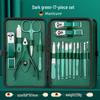 24-Piece Professional Dark Green Manicure Set with Nail Clippers & Scissors
