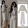 Plus Size Women's Autumn Street Style Jacket & Sports Two-Piece Set - Slimming & Fashionable