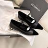 Sheepskin Pointed Leather Shoes Light Mouth Color Matching Flat Mary Jane Shoes Temperament Single Shoes Women's Versatile Ladyshoes