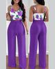 T9006 European & American Spring/Summer Fashion Print Camisole & Drawstring Long Pants Set