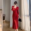 Red Knitted Slimming Dress for Women - New Year's Autumn/Winter Edition