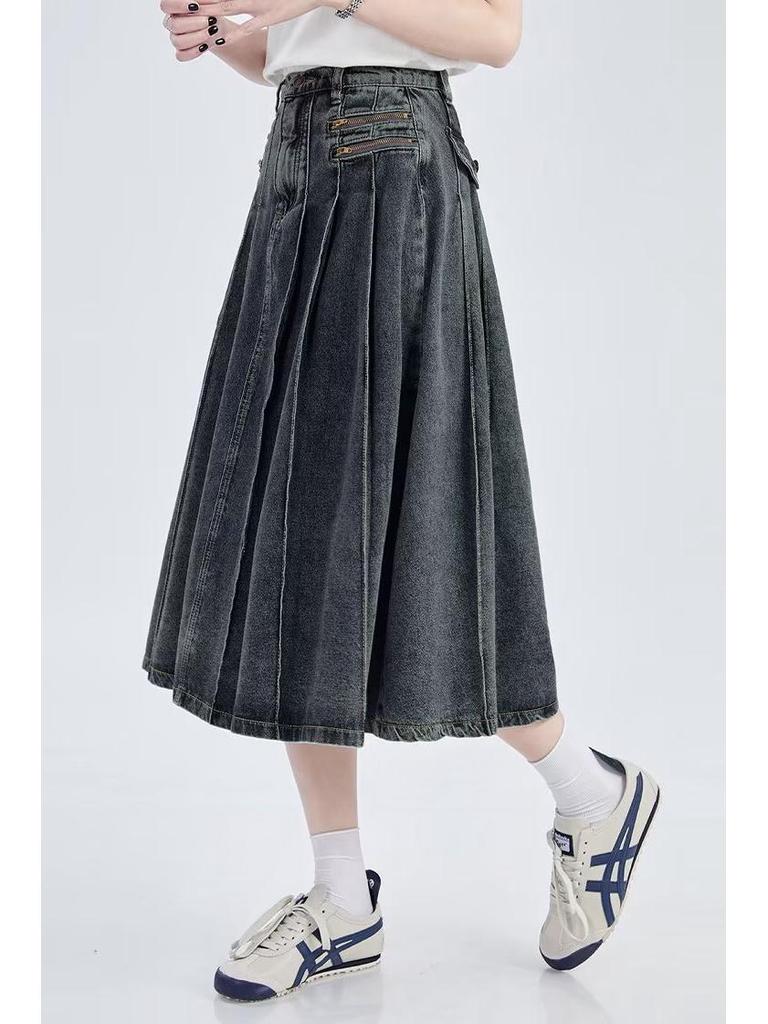 Discover the timeless charm of this retro-inspired denim midi skirt, expertly designed for the modern woman. Crafted from high-quality denim, its high waist and A-line cut create a flattering and slimming silhouette. The skirt features a convenient zipper closure for easy wear and a solid pattern for versatile styling. With its sportive style, it seamlessly blends casual comfort with chic elegance, making it a perfect addition to your summer wardrobe.