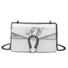 Snake Pattern Women's Bag New Retro Black Chain Small Square Bag Women's Handbag Velvet Shoulder Oblique Span Bag