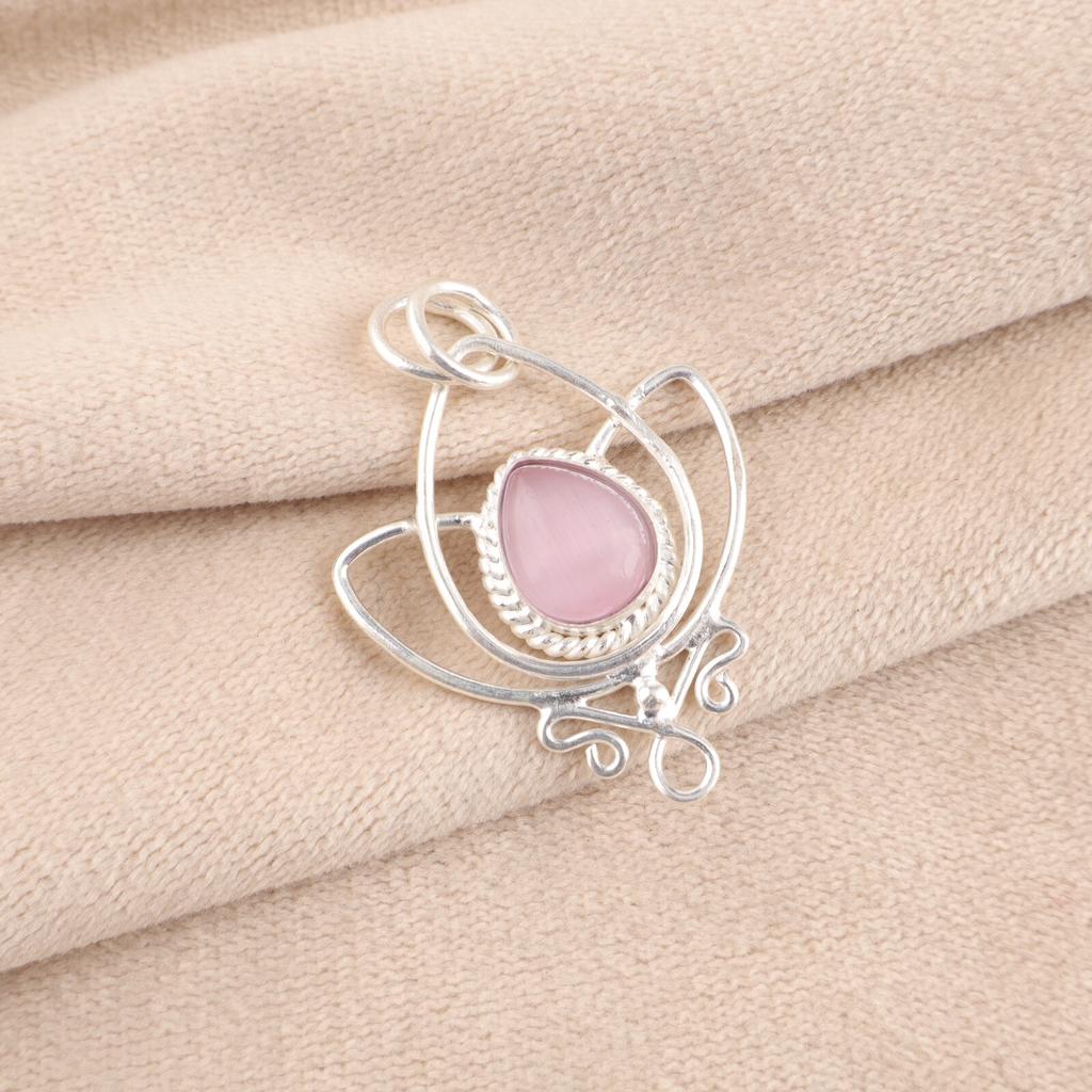 Pink Cat's Eye Gemstone 925 Solid Silver Jewelry Handmade Pendant Gift For Wife PP-38-49