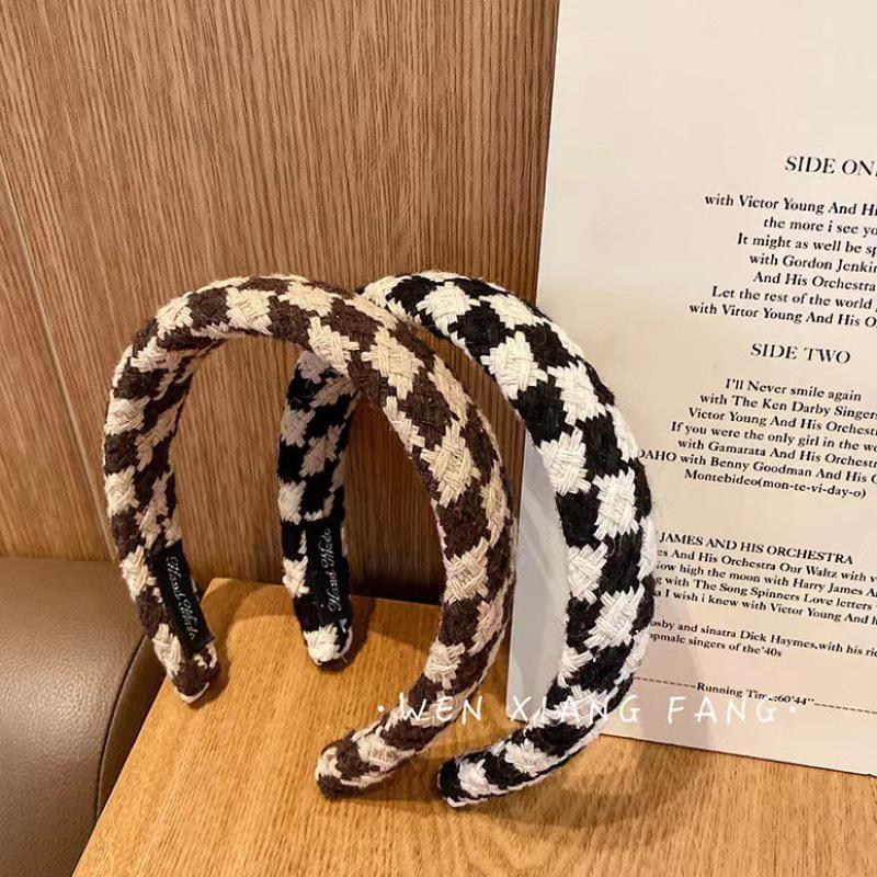 Houndstooth Wide-Brimmed Hair Clip Headband for Women - Versatile High Skull Top, 2024 New