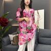 Mom Printed V-neck Mid-length T-shirt Summer Temperament Loose and Fashionable Slim and Age-reducing Top for Women