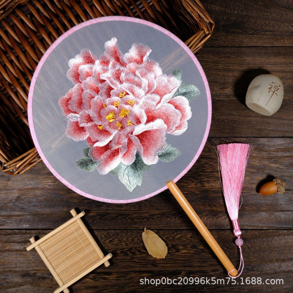 Suzhou Double-Sided Embroidery Round Fans, Assorted Designs with Tassels and Classical Fan Bones, Set of 10.