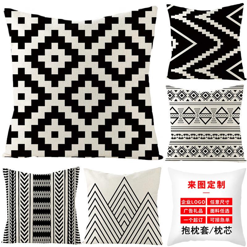 Black and White Nordic Simple Geometric Linen Pillowcase Modern Style Pillowcase Car Cushion Home
