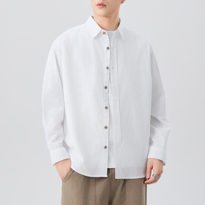 New Japanese Retro Men's Long-sleeved Loose Cotton Linen Shirt Casual American Versatile Shirt