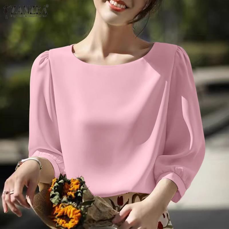 ZANZEA Women Casual Round Neck Summer 3/4 Sleeve Loose Blouse
