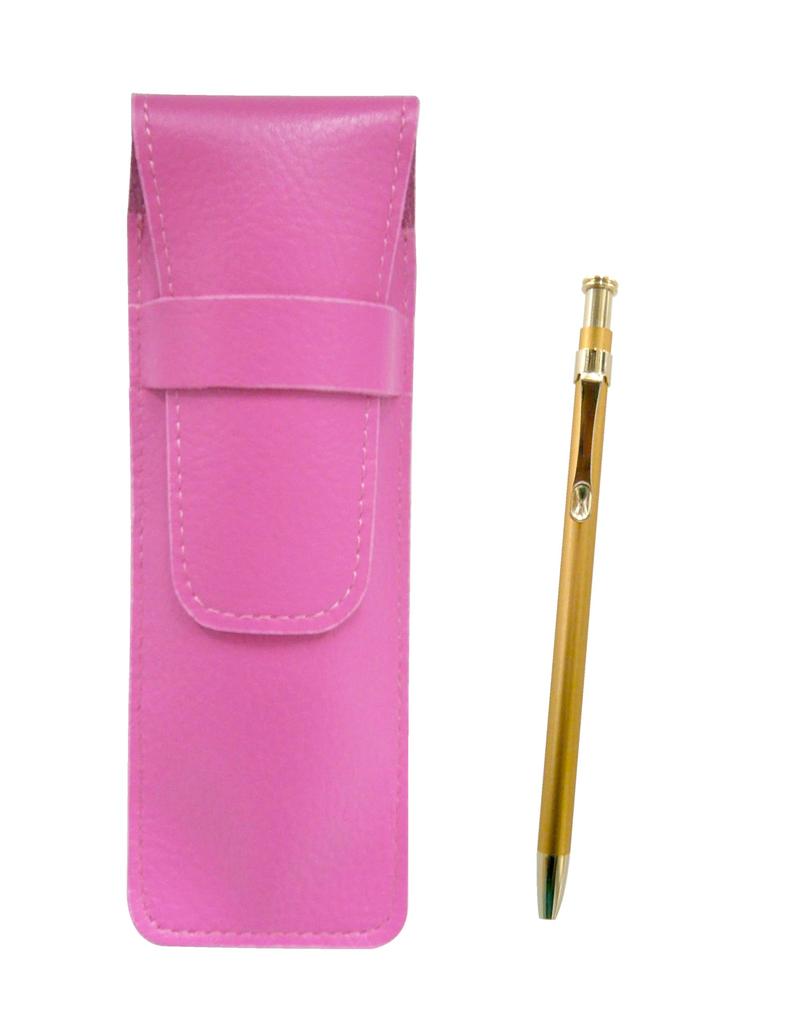 Pink Grained Leather Pen Case with Slim 60 Gold Ballpoint Pen Set 2-Pack (SASP-SV60KBP-2)