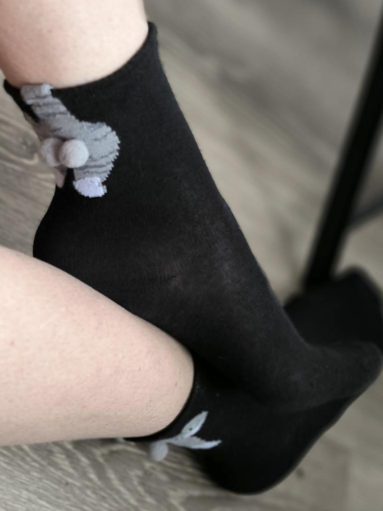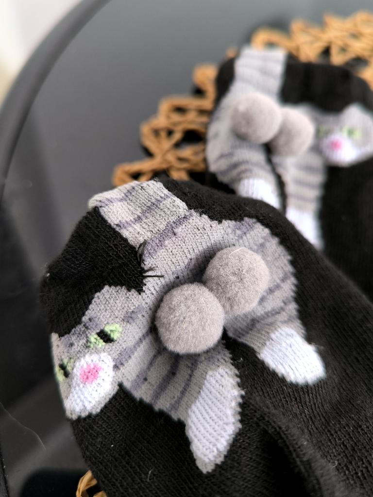 Cat socks ✨ Pack with two pairs of cat socks in size for those who wear 38-39. They are quite warm, mid-calf length, and look very cute since they are cats and have two small pompoms as the kitten's tail.. One is white with the ginger kitten and the other black with the tabby grey kitten. It arrived very quickly in less than a month by tracking number until delivery.