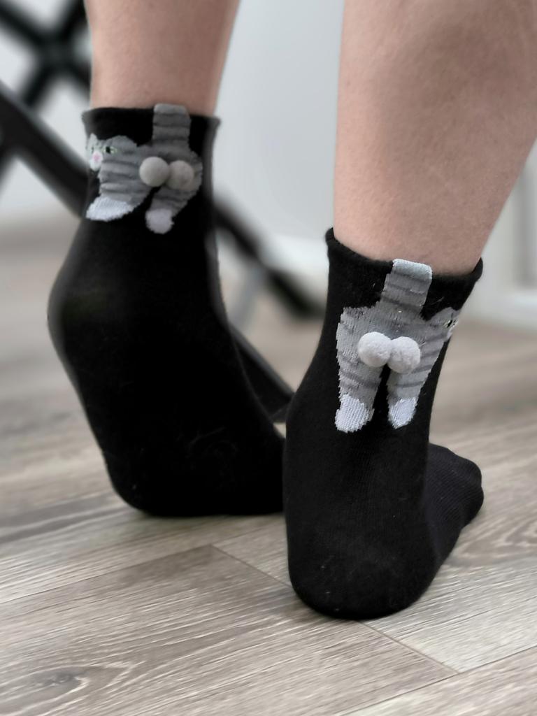 Mid Length Socks with Cute Cartoon Cat Heel Three-dimensional Fur Ball Fun Socks