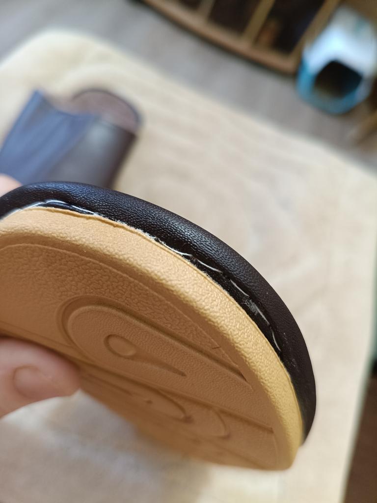 Tovar married. The production technology is violated. The upper part of the slipper is not glued properly. During use, the threads will wear out and the slipper will fall apart.