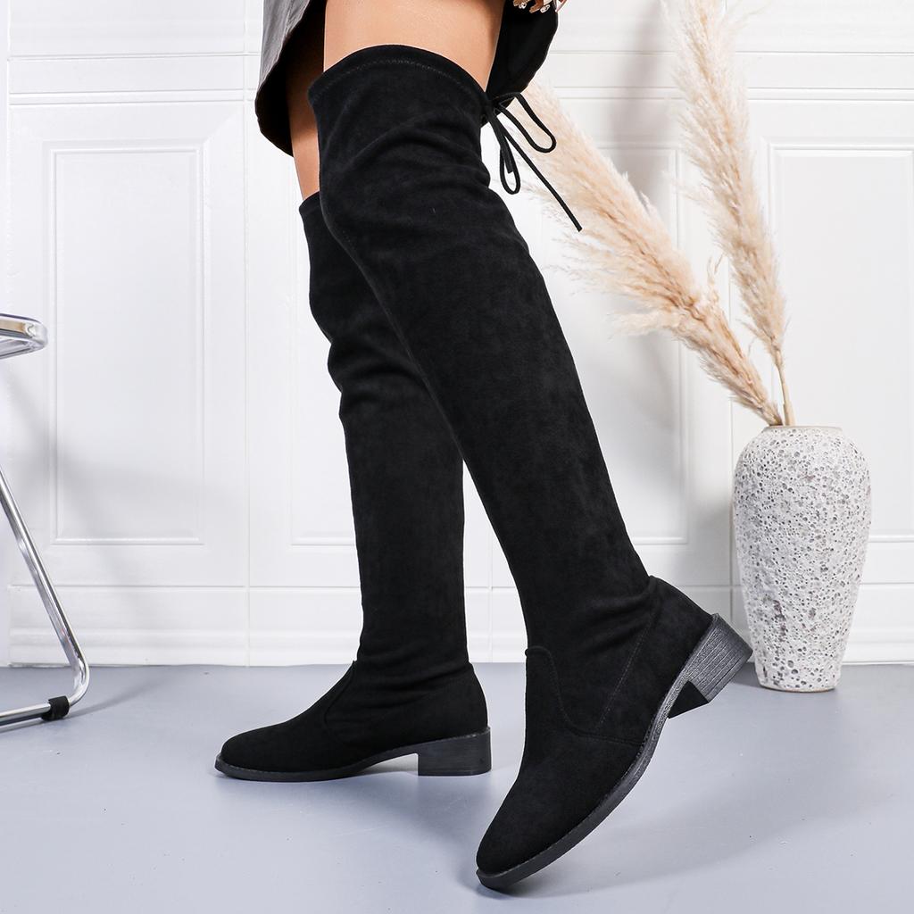 2024 Autumn Zipper Elastic Knee-high Boots for Women Tube Lace-up Thigh Gigh Boots Black Botas Faux Suede Female Heels Mujer