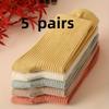 5 Pairs Women's Striped Socks, Solid Color Mid-Calf Versatile Spring Autumn Winter Models, Double-Needle Thickened Simple Solid Color Long Socks