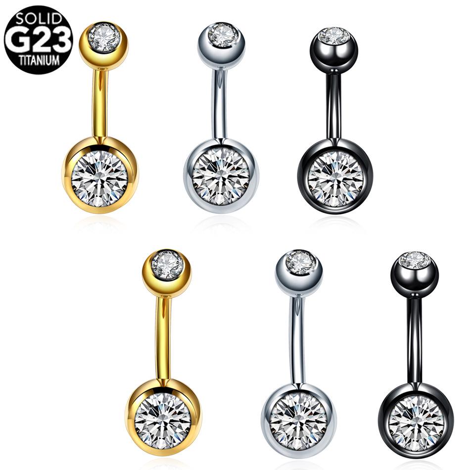 Titanium Zircon Navel Ring 14G Barbell Piercing Jewelry (6/8/10mm)