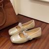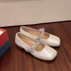 Silver Flat Bottom Square Head Mary Jane Single Shoes Women's Summer New Rhinestone Bow with Skirt Small Leather Shoes