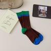 Female Spring and Summer New Trend Match Color Embroidery In Long Tube Cotton Socks