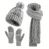 2025 Winter Beanie Hat Scarf Gloves Set for Women, Pom Pom Fleece Lined Hat Long Scarf Neck Warmer Touchscreen Gloves for Cold Weather