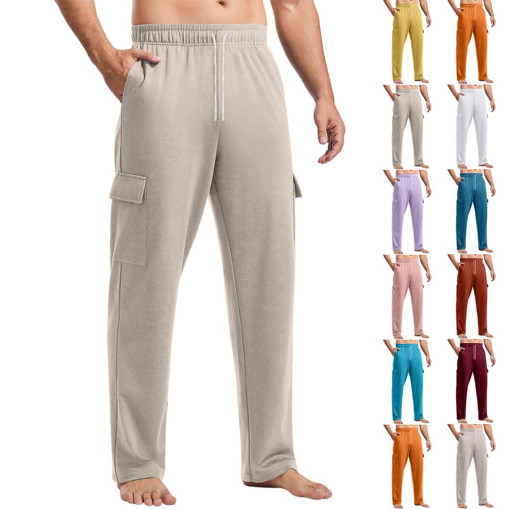 Men's Loose Casual Multi-pocket Work Pants, Youth Stretch Waist Drawstring Pants