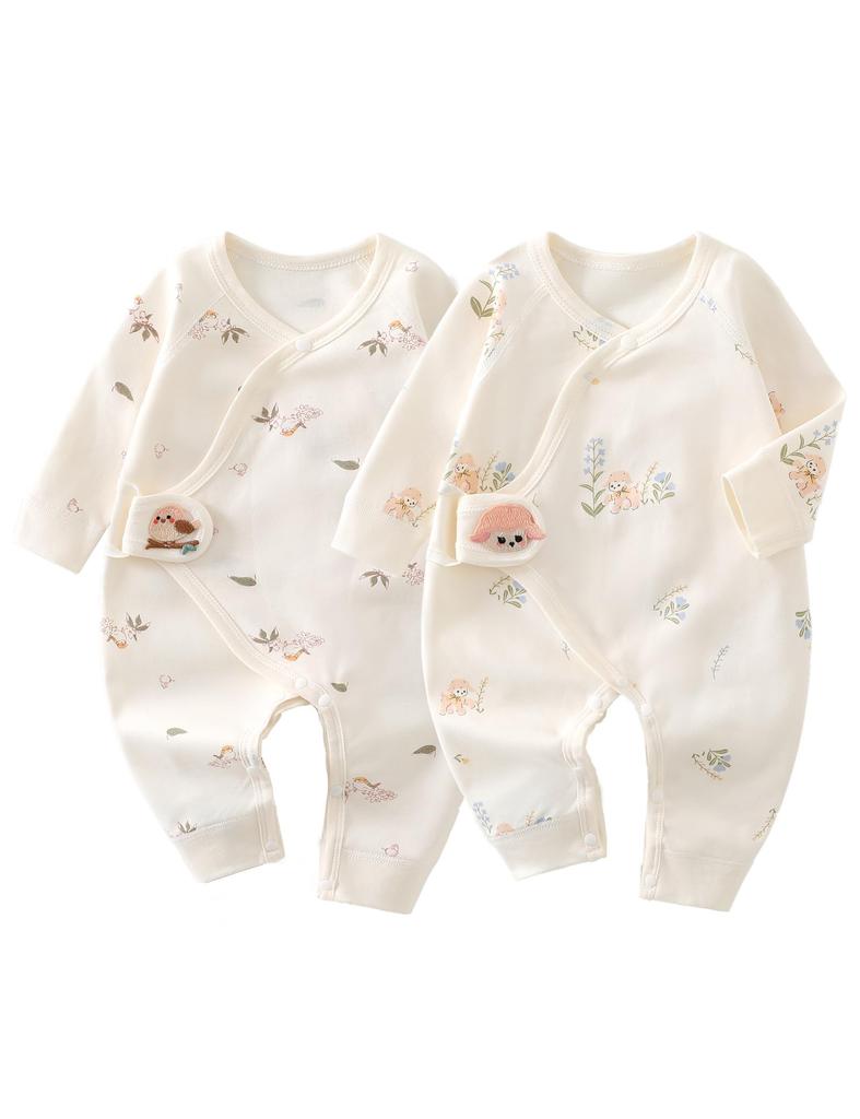 The stitching is beautiful and the collar is stretchy. The stitching is gentle on delicate skin, with outward seams at the sides and under the sleeves to prevent direct contact with babies' delicate skin, which is thinner than that of adults. The one-piece design allows babies to move freely, and the tummy is covered, making it a great alternative to pajamas. The large gusset at the crotch provides ample space for the baby's bottom, even in a diaper, and allows for easy movement.