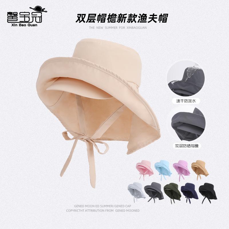Summer Outdoor Sunscreen Hat Double-layer Large Brim Quick-drying Waterproof Bucket Hat Shawl Ponytail Sun Hat Children