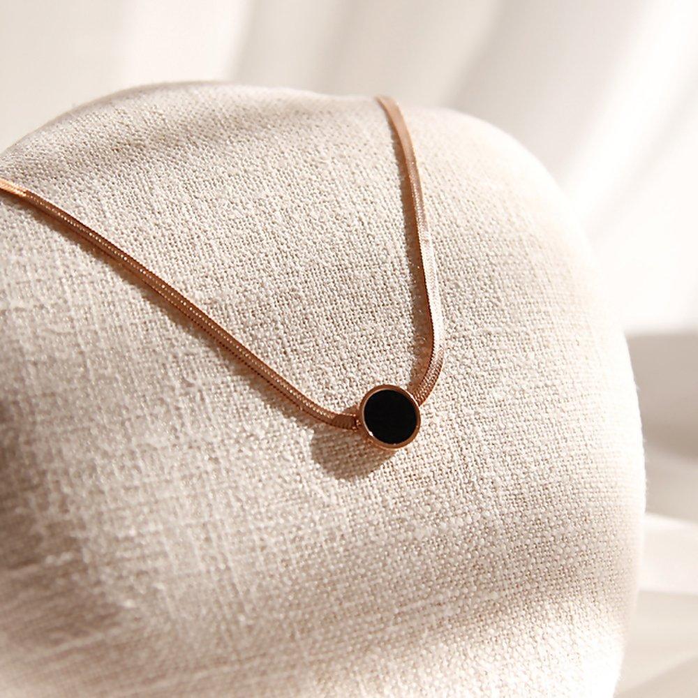 J.Lauren N0847 Surgical Steel Onyx Rose Gold Necklace