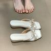 Fairy Wind Square Head Cross One-Word Slippers Female 2025 Summer Bow with Skirt Cool Slippers