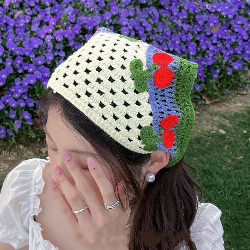 Elegant Knitted Triangle Scarf Headband For Women Cherry Pattern Hair Band Headscarf Hair Accessories Skirt Butt Curtain