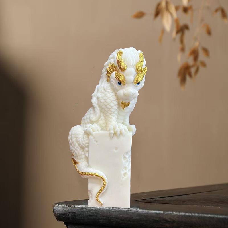 Chinese White Dragon Mascot Statue Guardian Beast Home Room Office Table Decoration and Accessories Wealth Luck Feng Shui Decor