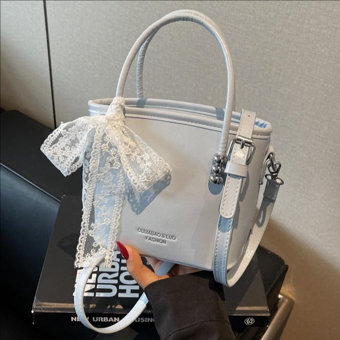 Chic PU Handheld/Shoulder/Crossbody Bag with Lace Bow Detail: Crafted from PU with a glossy finish, featuring a lovely lace bow accessory that adds a touch of sweetness and charm. Designed for handheld, single - shoulder, or cross - body wear, ideal for adding a stylish touch to daily outings, dates, or casual events.