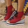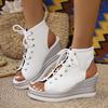 Fashion Casual Canvas Lace Up Peep Toe Sandals Women 2025 Summer Sexy Chunky Platform Wedge Heel Sandals Fashion High Heel Ankle Shoes