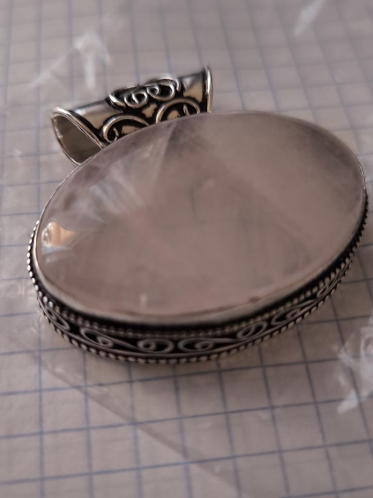 Rose Quartz Gemstone 925 Sterling Silver Jewelry Pendant 1.77"