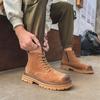 Martin Boots Men's Short Boots Autumn Side Zipper Boots Leather Rhubarb Boots Platform Tooling Shoes Outdoor Casual Desert Boots