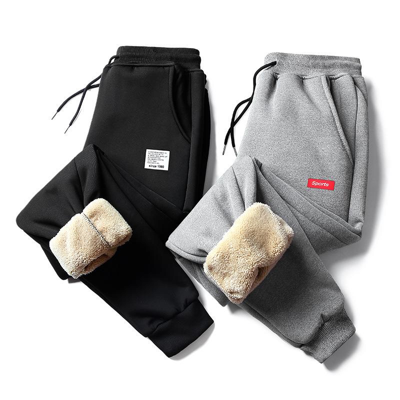 Men's Winter Trousers Lace-up Elastic Waist Sports Leggings with Velvet Lining