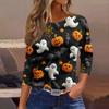 Women's Fashion Casual Three-quarter Sleeve Halloween Printed Round Neck Top