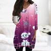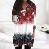 Womens Tops V-neck 3/4 Sleeve Blouses Casual Mid-length Shirts Fashion Christmas Print Tunic Tops With Pockets