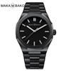 Hannah Martin Black Waterproof Watch with Japanese Miyota Movement and Polygonal Stainless Steel Bracelet.