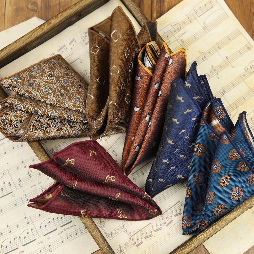 Men's Coffee Floral Pocket Square - Tuxedo Accessory with Small Pattern