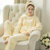 Snuggle up in comfort and style with these women's long-sleeve flannel pajamas, perfect for the chilly fall and winter months. Made from soft and cozy flannel, this set features a cute cartoon design that adds a playful touch to your nighttime routine. The long sleeves provide extra warmth, making these pajamas an ideal choice for cooler weather. Experience ultimate relaxation and coziness in this delightful coral fleece set.