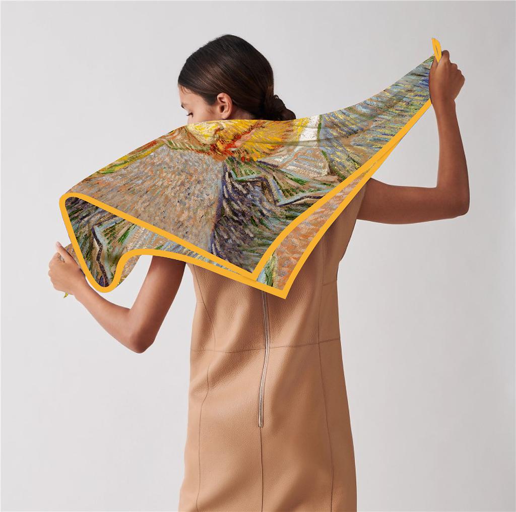 New Silk Scarf Self-Portrait Print Square Scarves Head Echarpe Silk Foulards Femme Wraps Beach Shawls Bandana Lady Hijabs 90CM